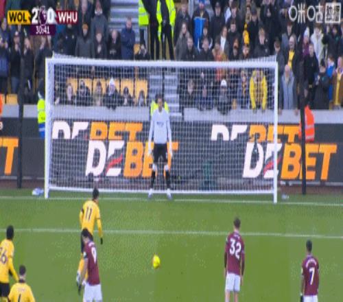 第31分钟,黄喜灿点射破门,狼队2-0领先西汉姆